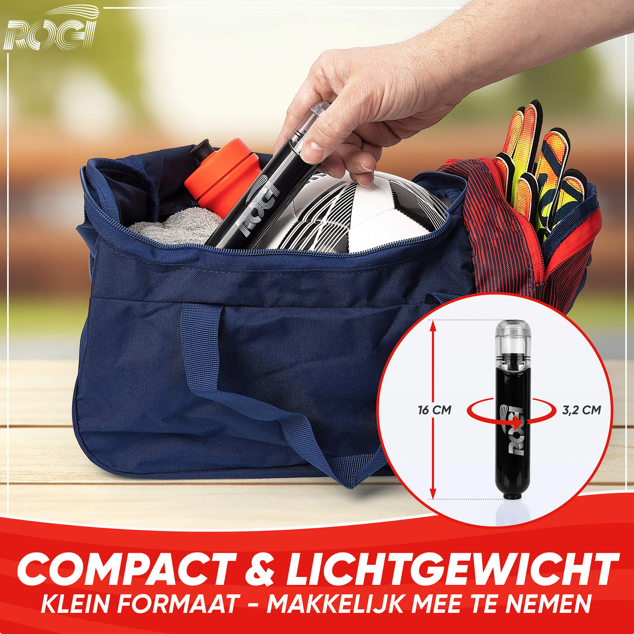 Met de Rogi Ballenpomp heb je jouw bal binnen enkele minuten opgepompt en ben je klaar om te spelen.